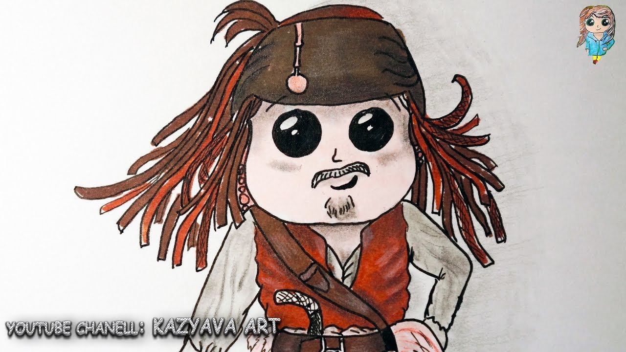 ![Пират Джек Воробей рисунок для детей]()