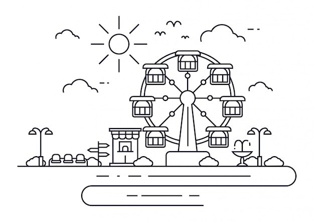 ![Парк с колесом обозрения раскраска]()