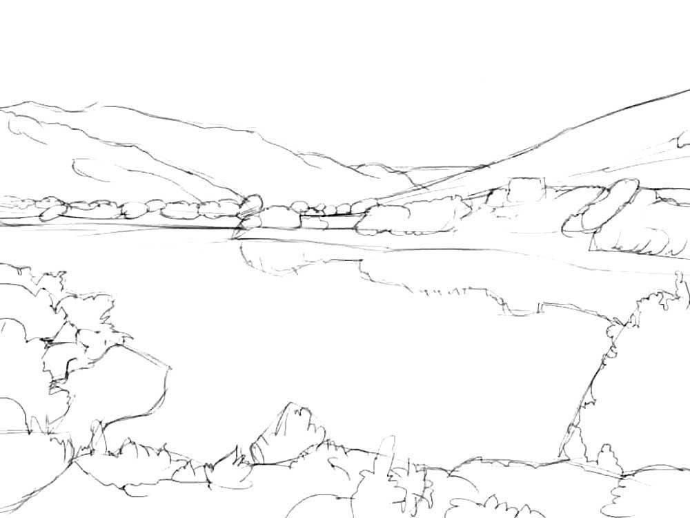 Рисовать озеро карандашом