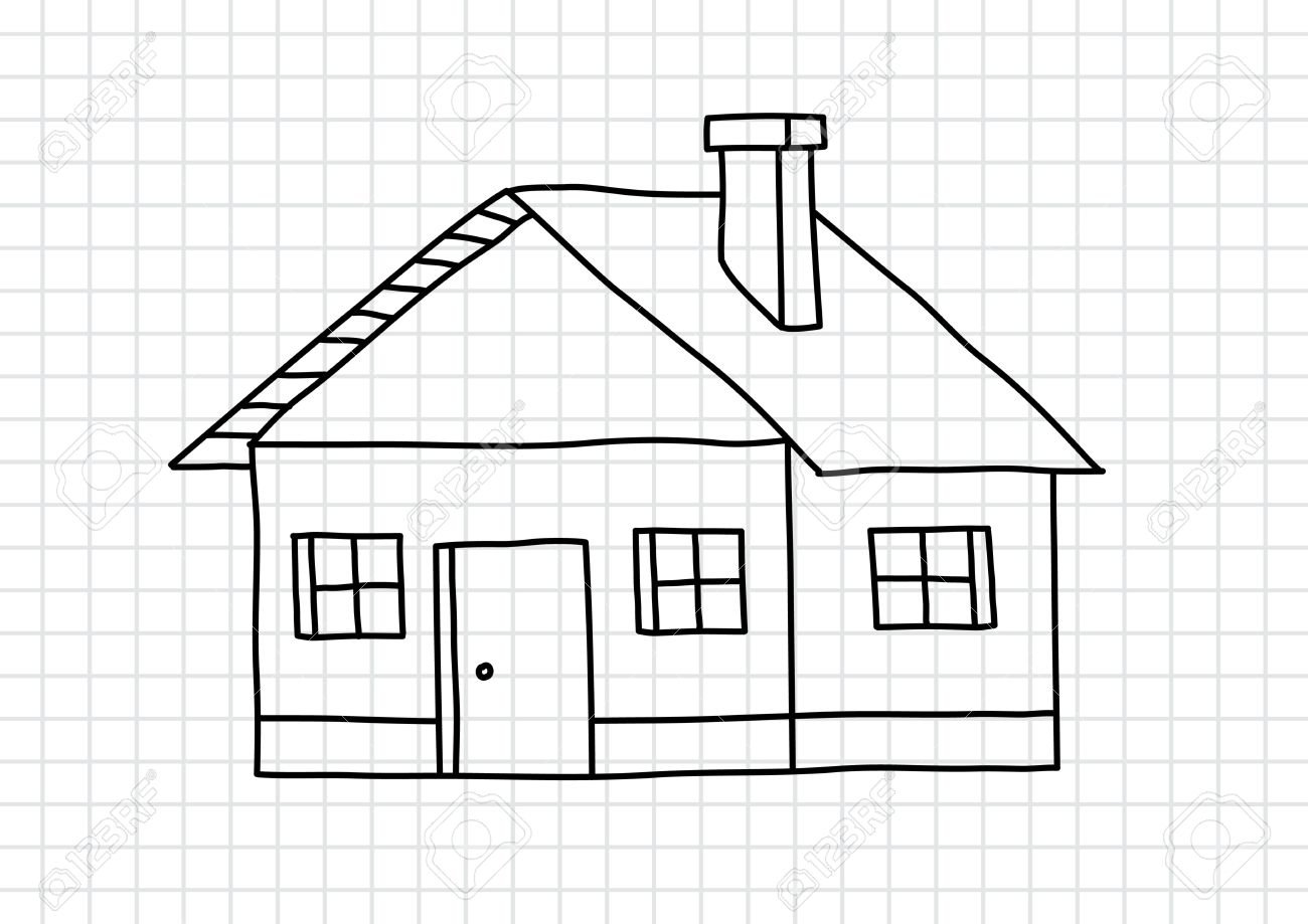 ![Домик на бумаге нарисованный]()