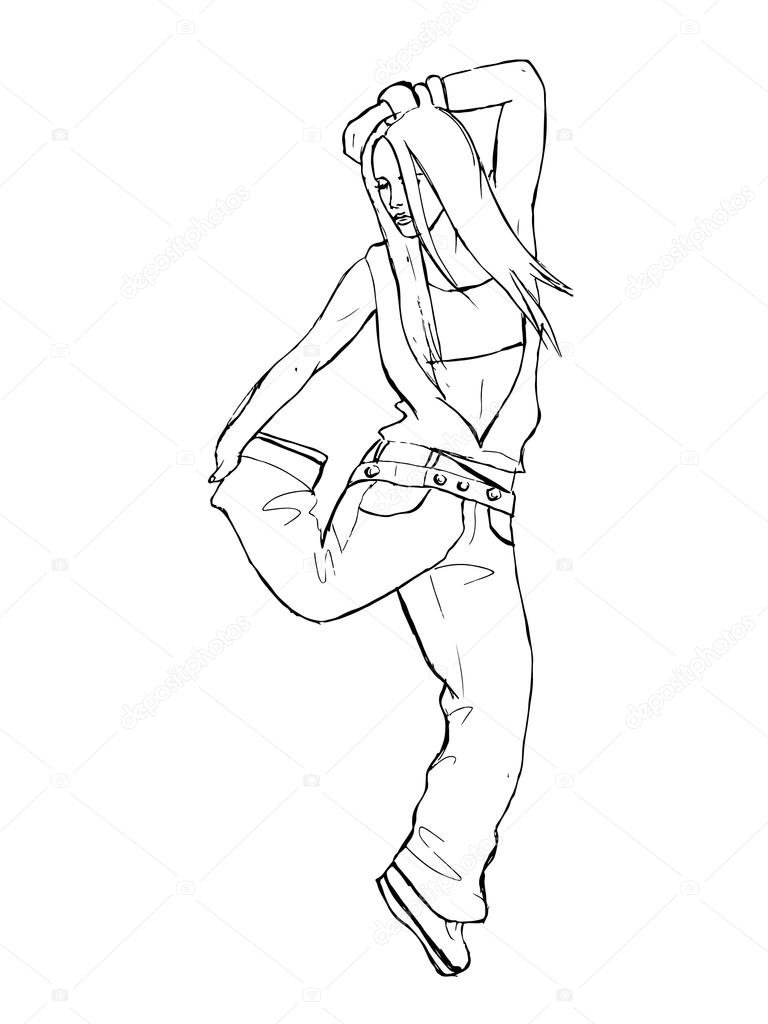 ![Набросок танцующей девушки]()