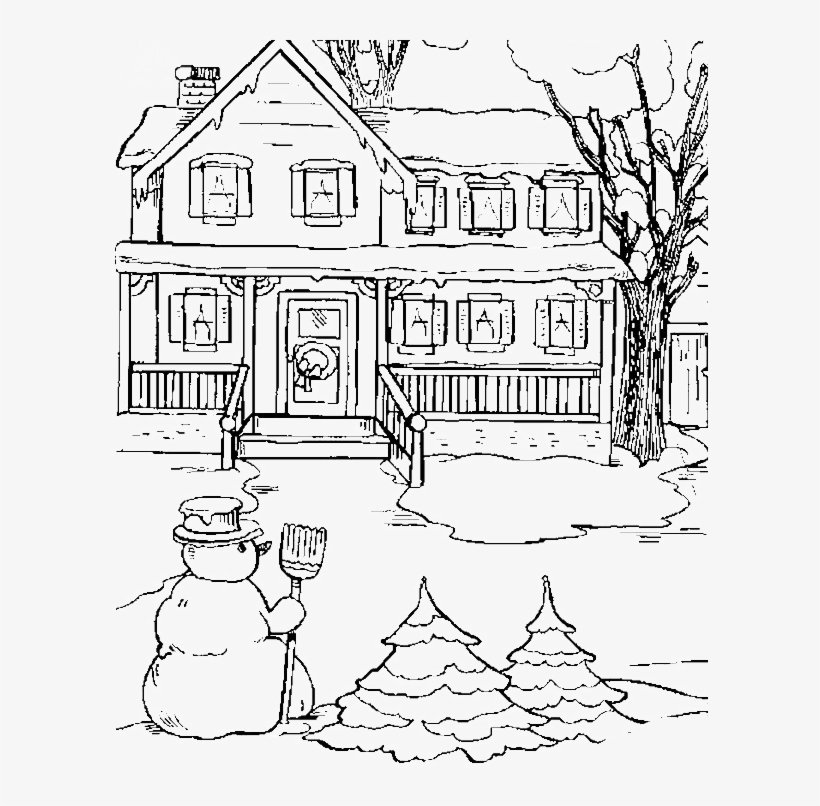 ![Раскраска зимний дом]()