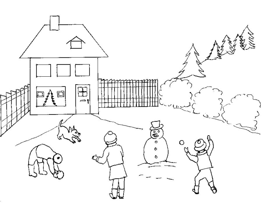 ![Зимний двор раскраска для детей]()