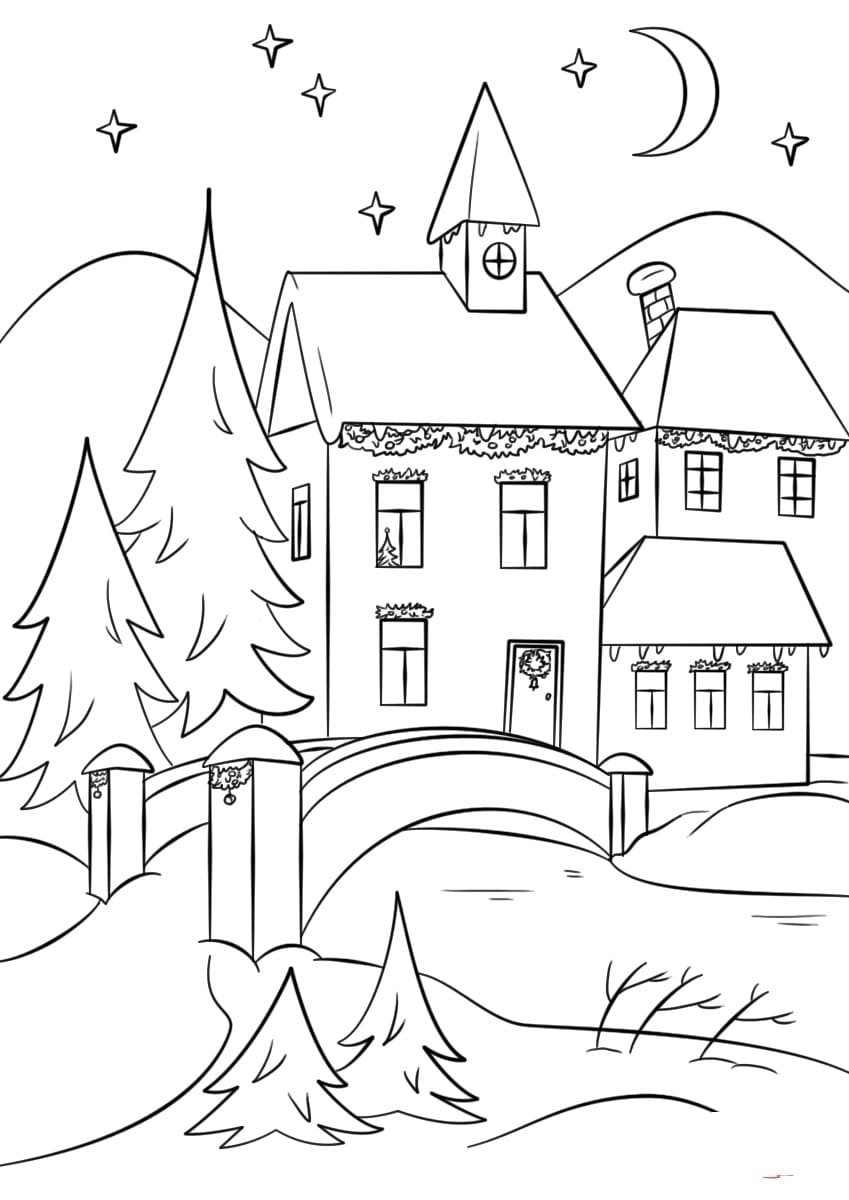 Раскраска домик зимой