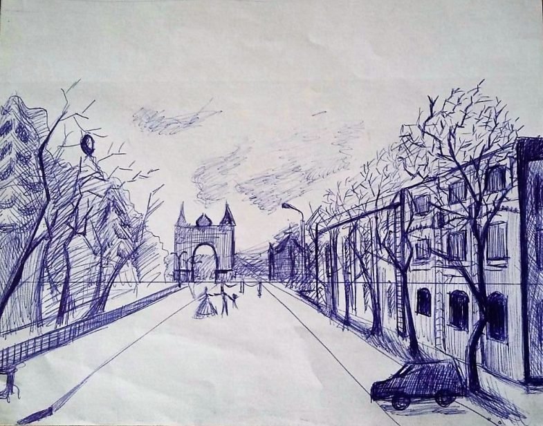 ![Набросок пейзажа дорога]()
