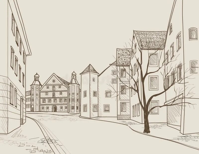 Карандашные зарисовки городского пейзажа