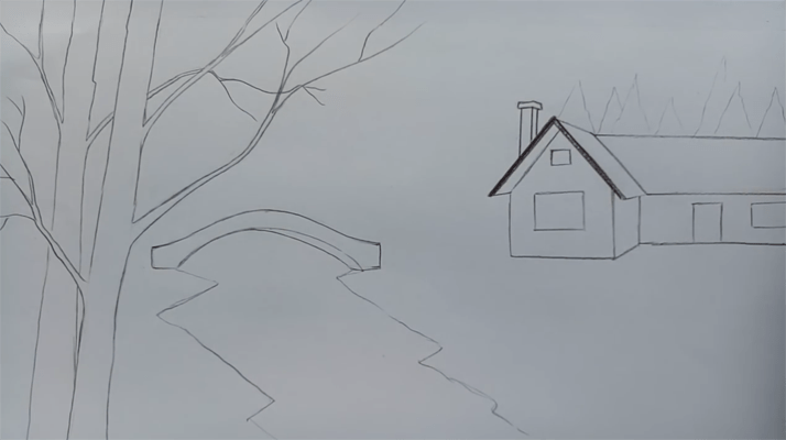 ![Зимний пейзаж карандашом]()