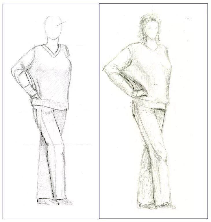 ![Зарисовки фигуры человека стоя]()