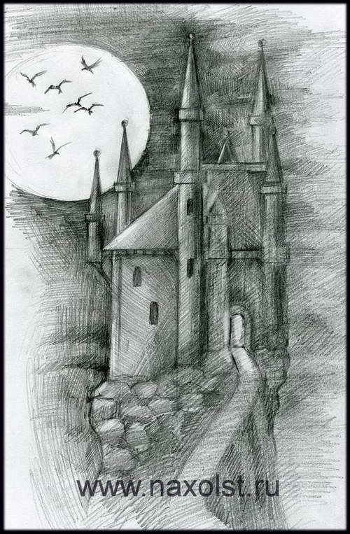 Старый замок рисунок легкий