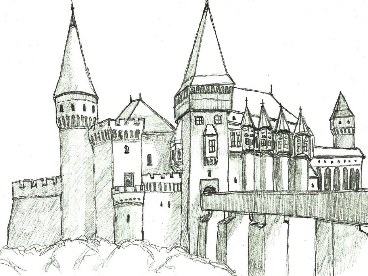 ![Средневековый замок эскиз]()