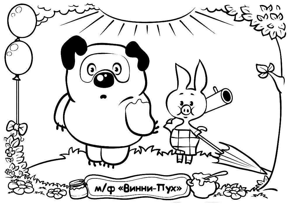 Раскраска Винни пух и Пятачок