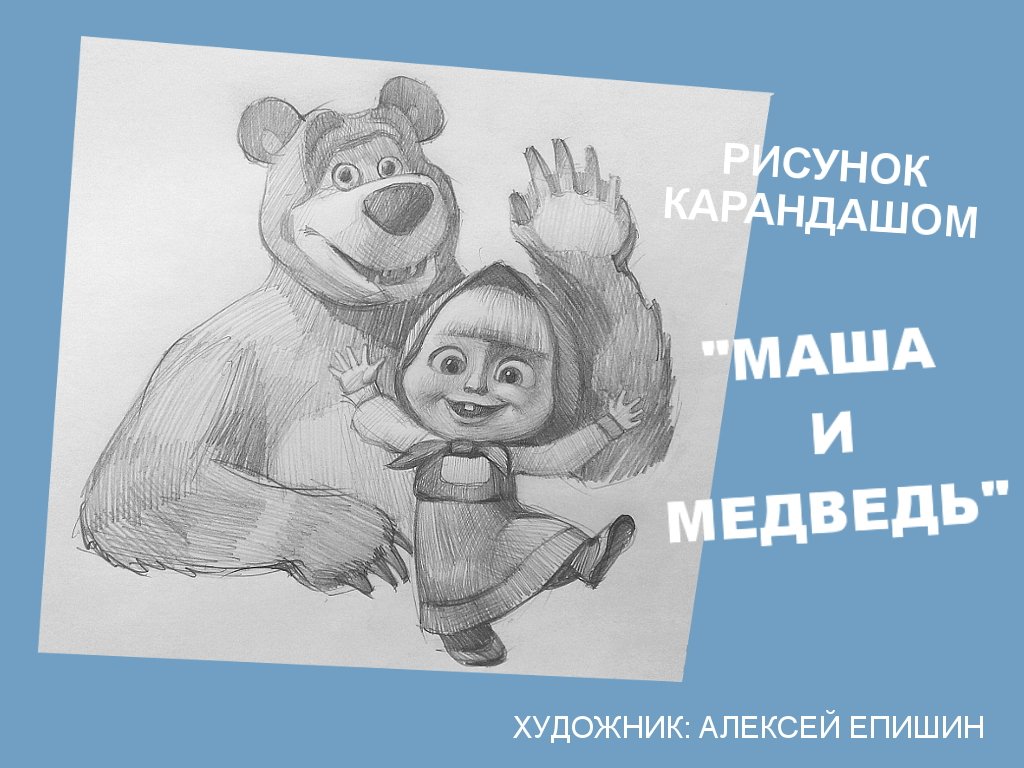 ![Рисунки Маши и медведя для рисования карандашом]()