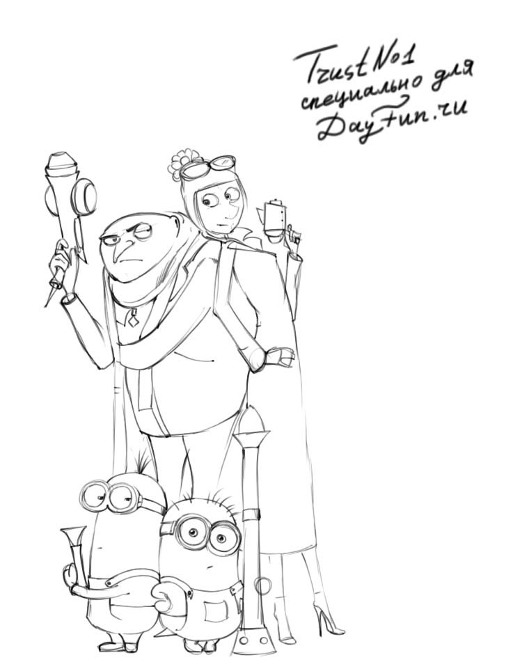 ![Миньоны карандашом]()