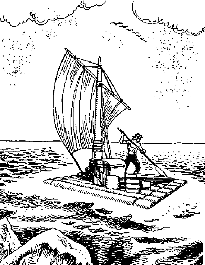 ![Робинзон Крузо на лодке]()