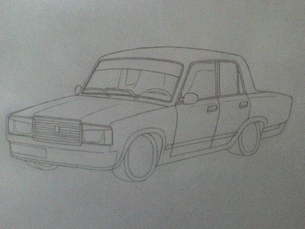 ![ВАЗ 2107 рисунок карандашом спереди]()