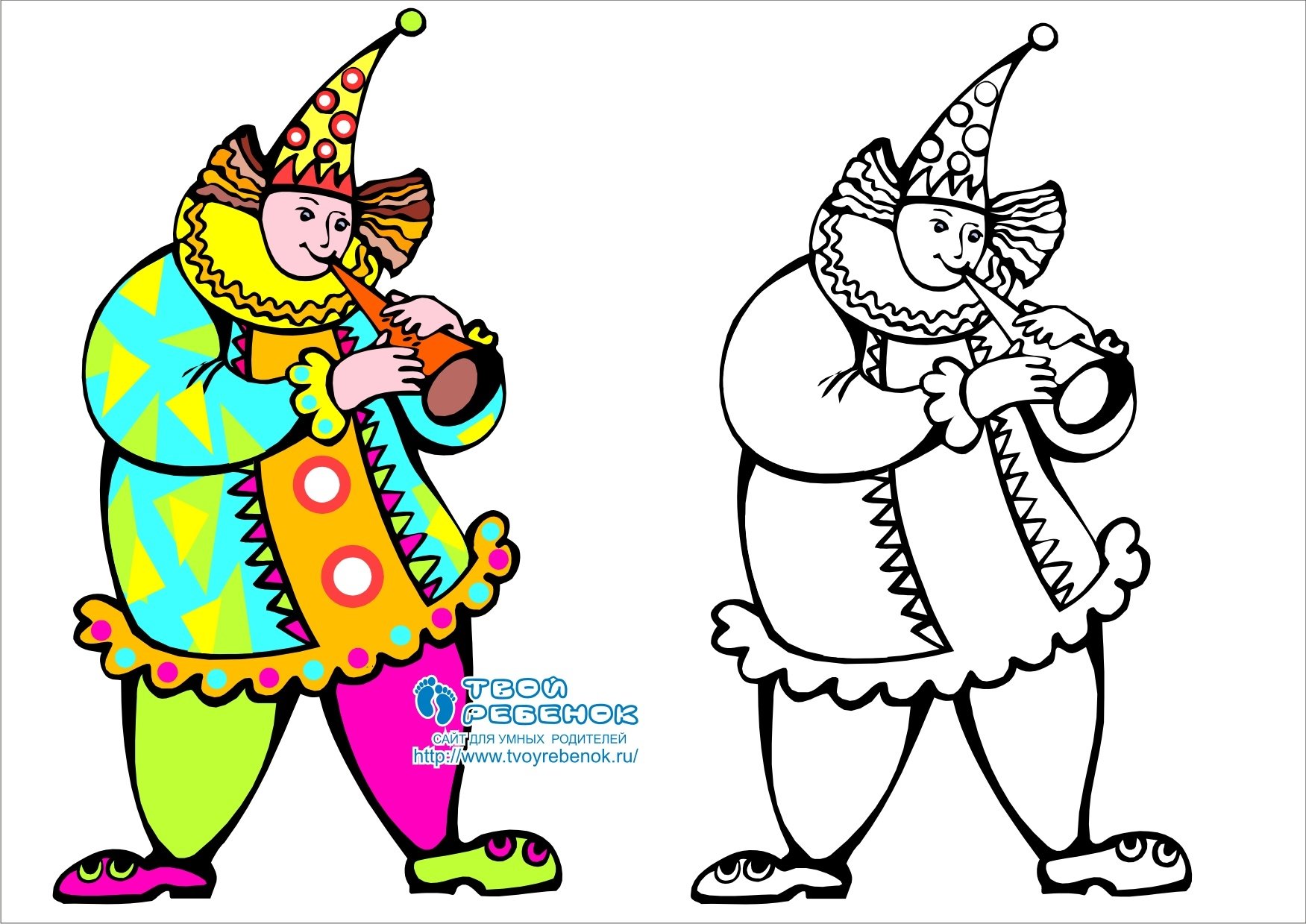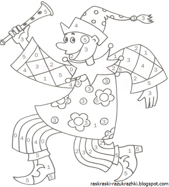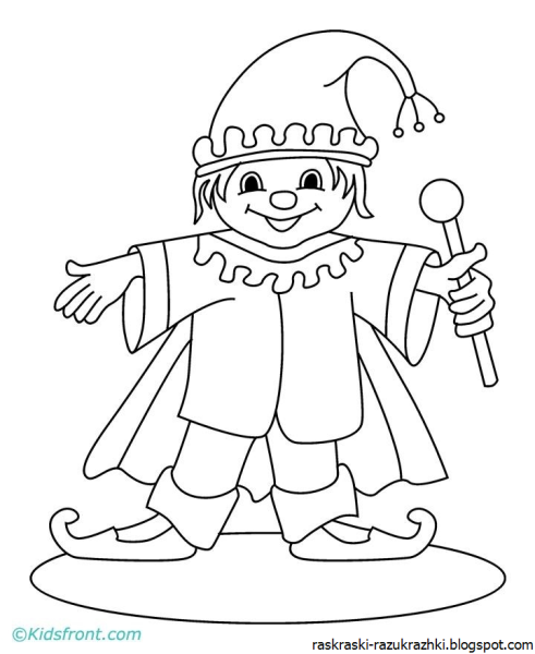 ![Скоморох раскраска]()
