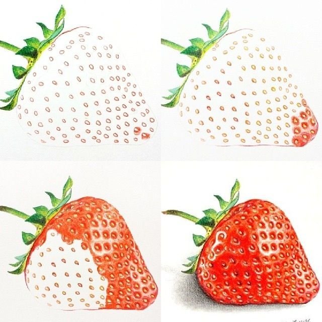 ![Рисование карандашами клубника-]()