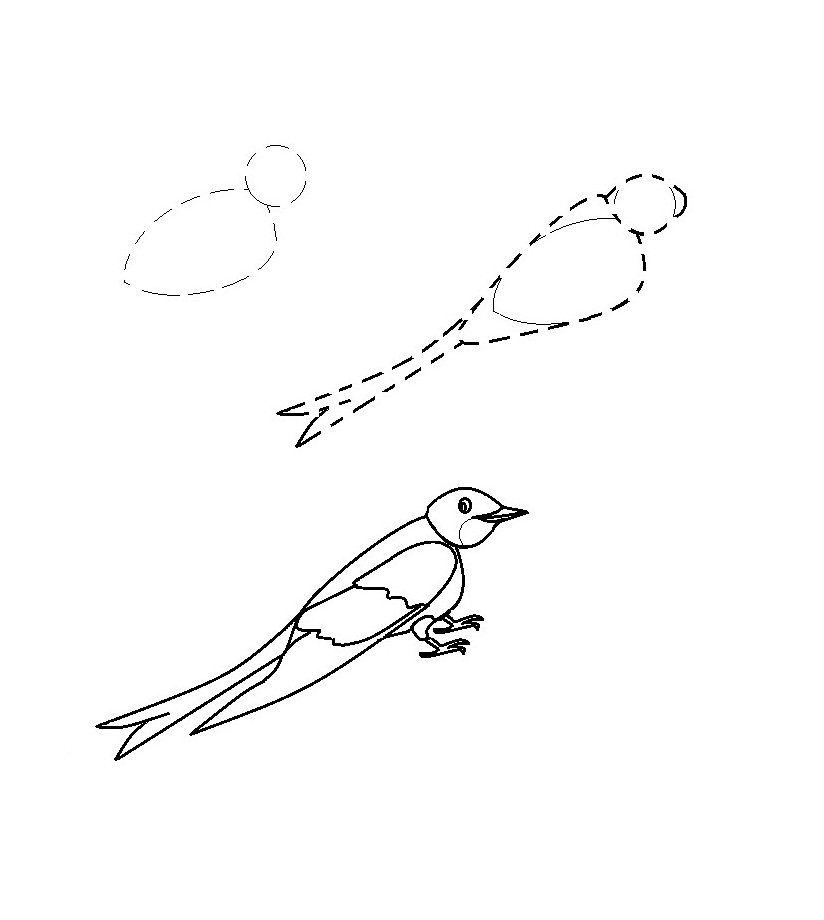Поэтапное рисование ласточки
