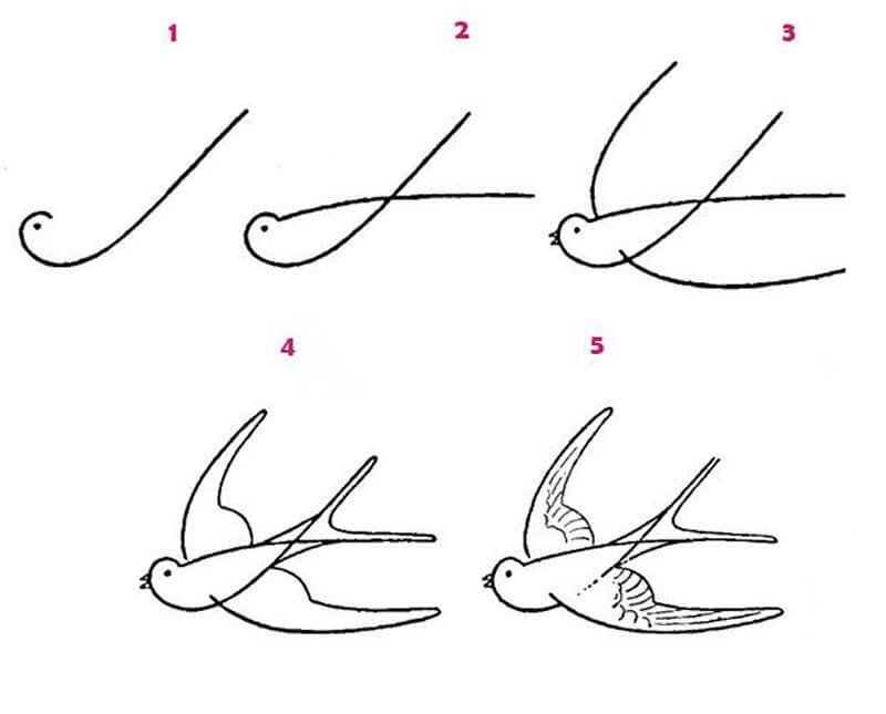 ![Как нарисовать ласточку]()