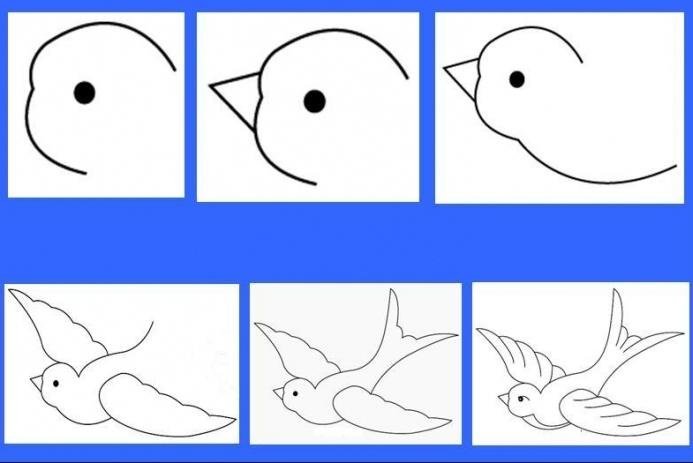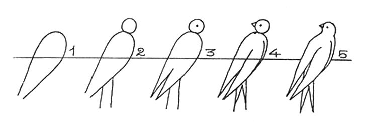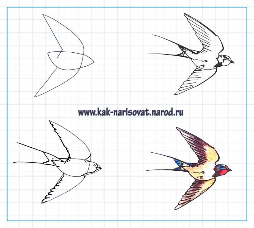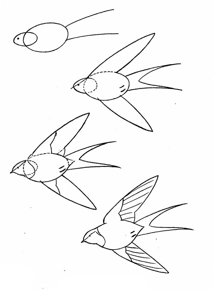 ![Этапы рисования ласточки]()