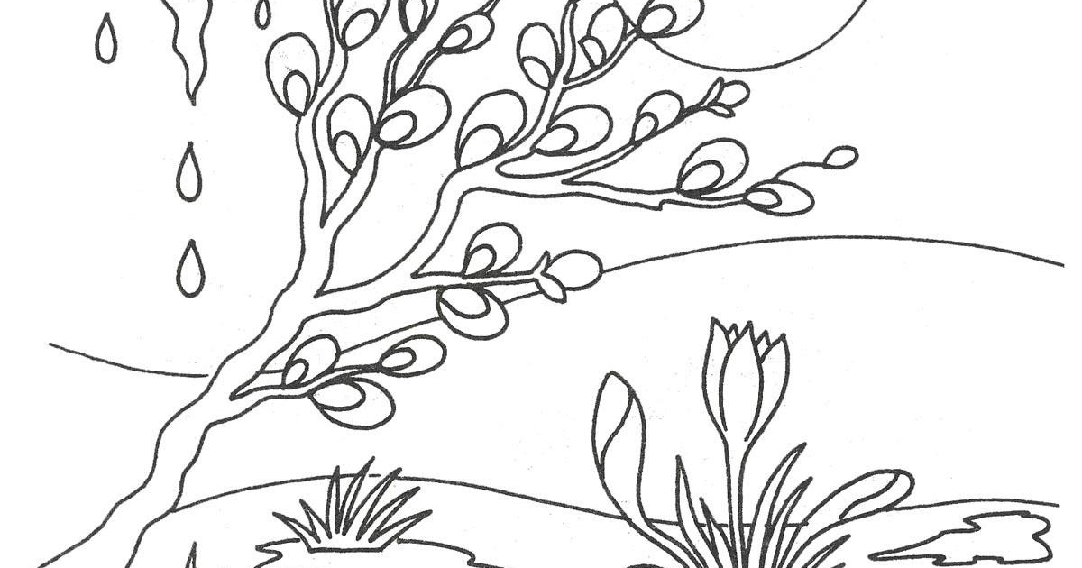 Весенний пейзаж раскраска для детей