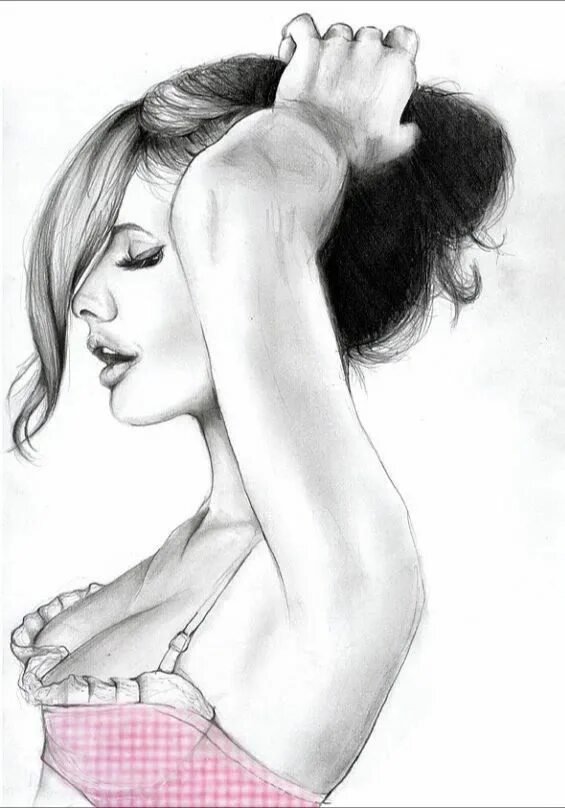 ![Рисунки карандашом для срисовки поэтапно девушка]()