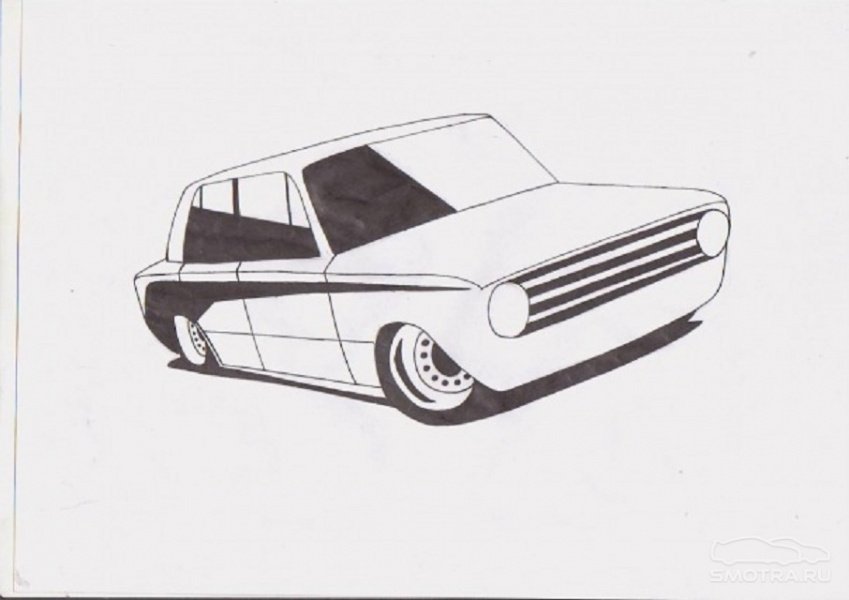 ![ВАЗ 2107 рисунок карандашом сбоку]()