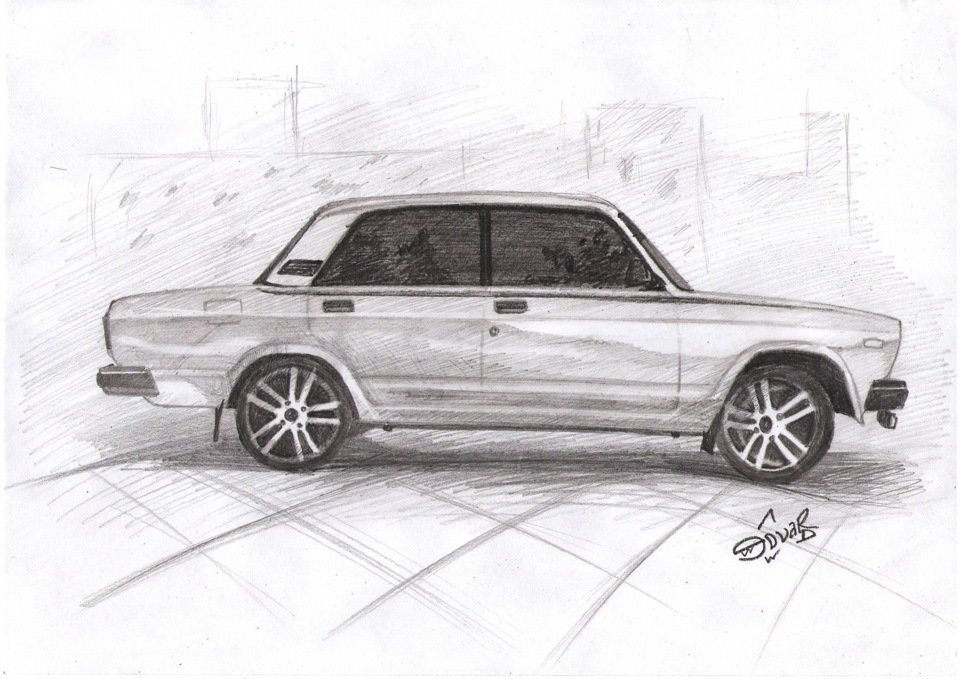 ВАЗ 2107 рисунок карандашом сбоку