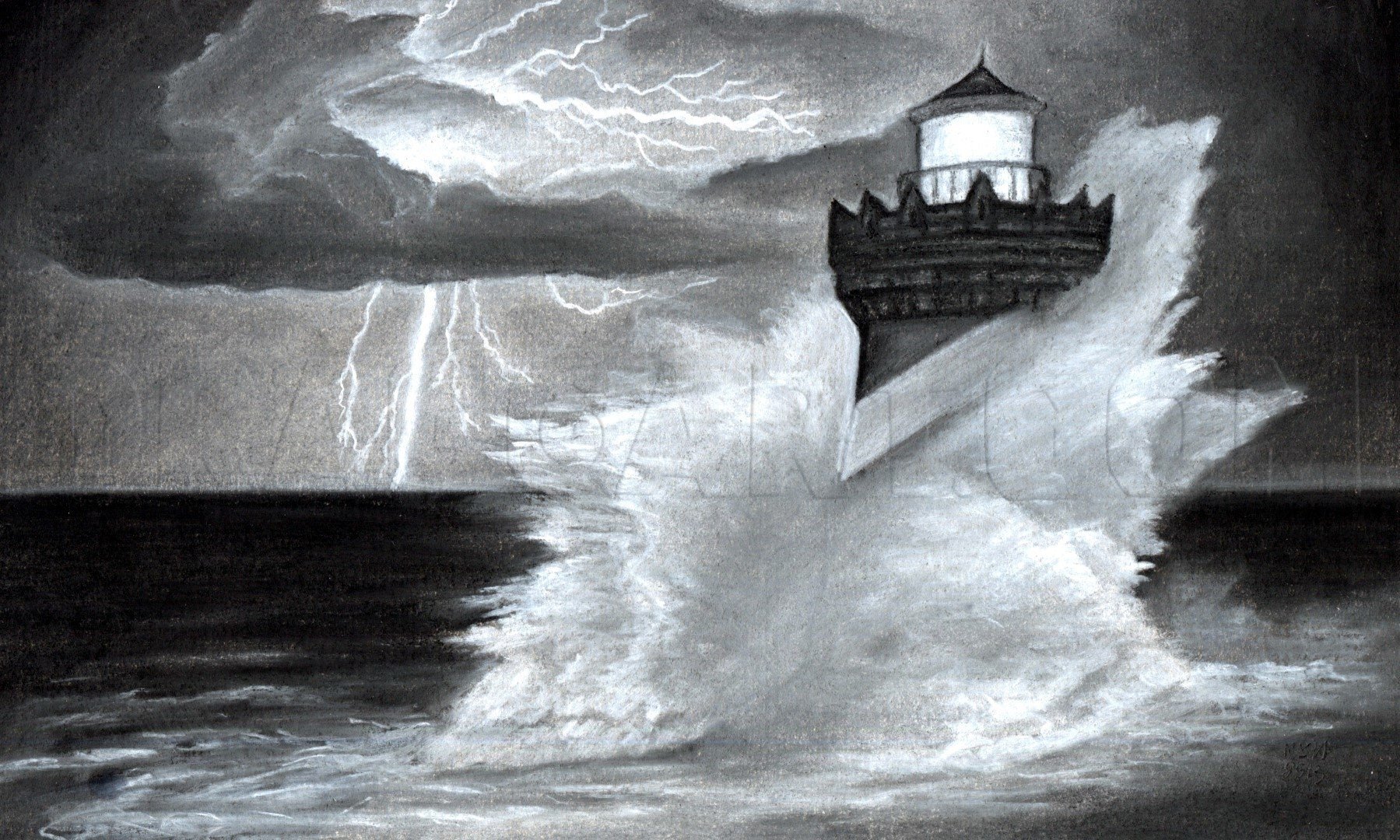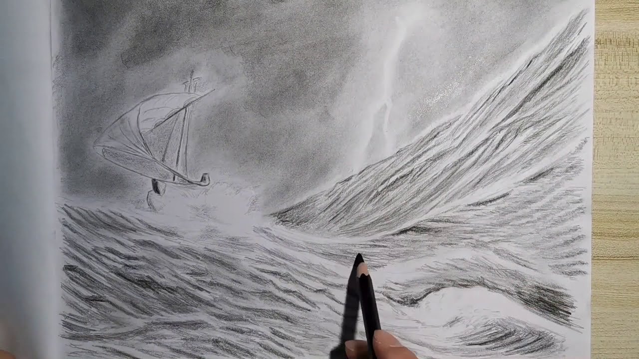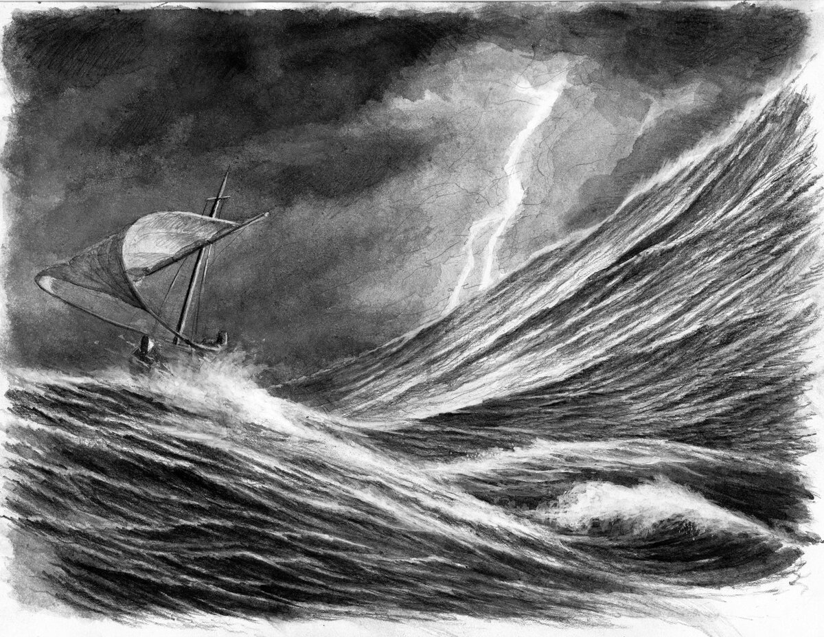 ![Шторм на море карандашом]()