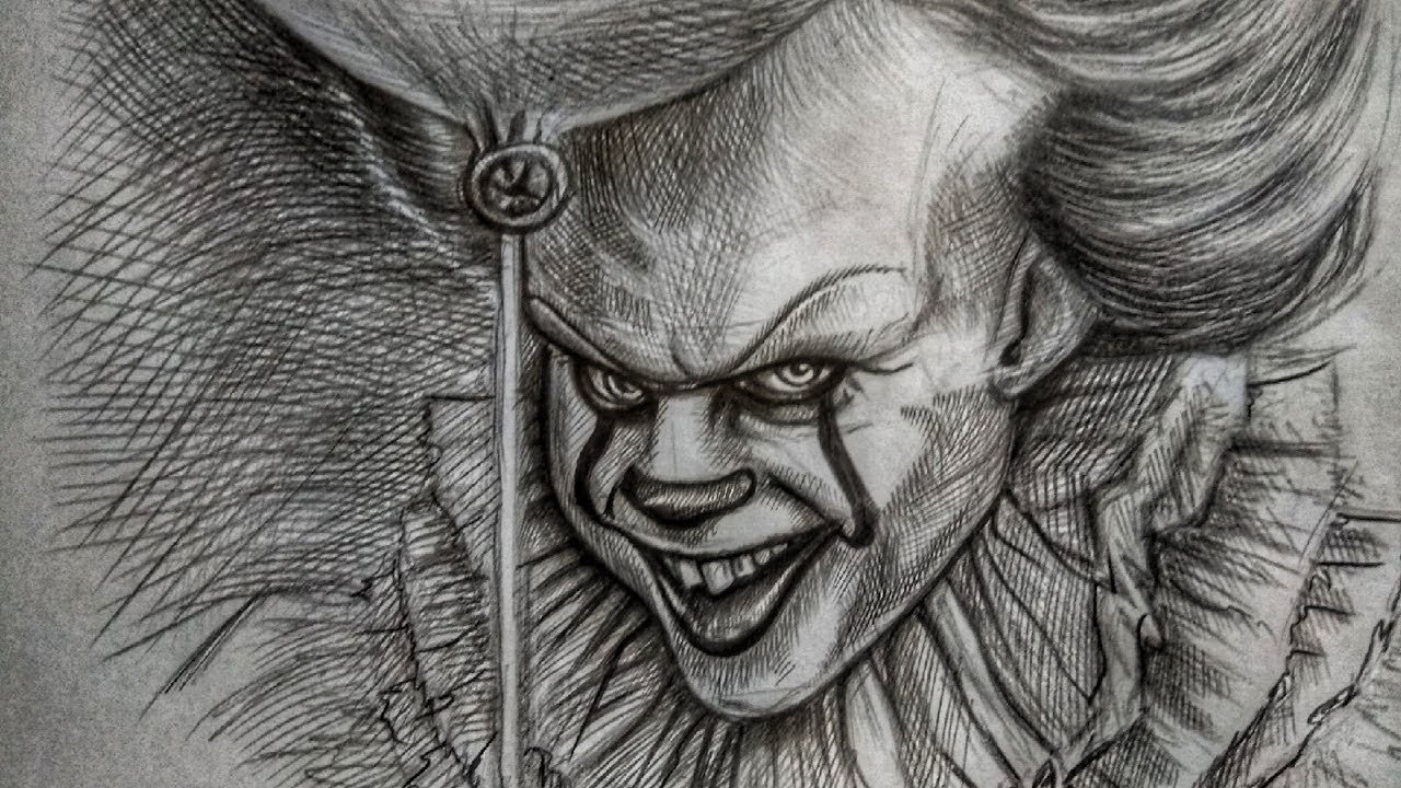 Страшный клоун карандашом