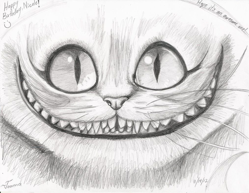 ![Чеширский кот для срисовки]()