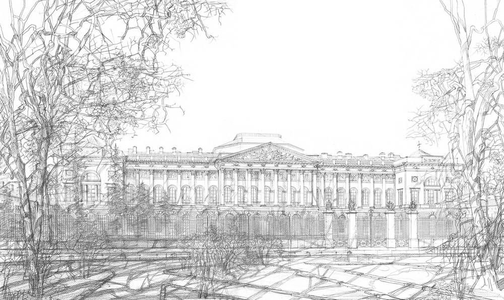 ![Зимний дворец Санкт-Петербург набросок]()