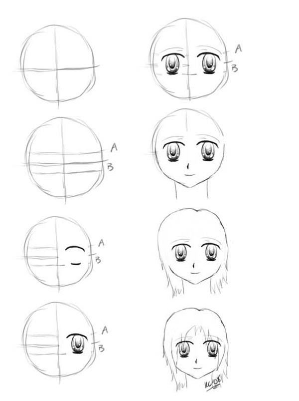 Рисунки лица легкие аниме
