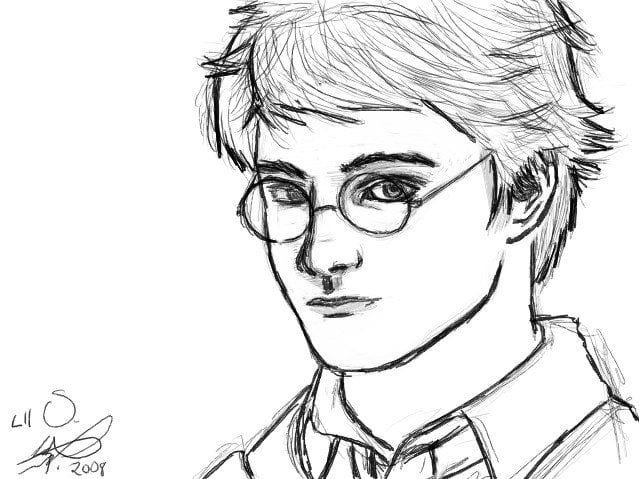 ![Скетч портрет Гарри Поттера]()