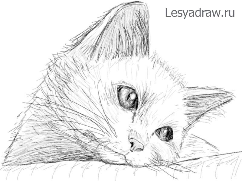 ![Мордочка кота карандашом]()