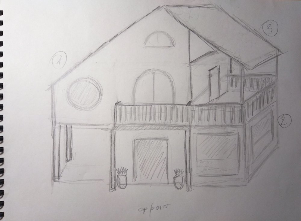![Дом в перспективе карандашом]()