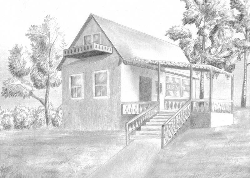 ![Дом карандашный рисунок]()