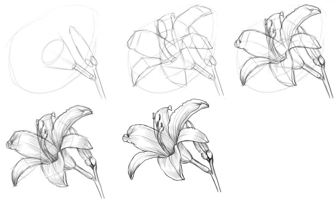 Пошаговый рисунок карандашом цветы