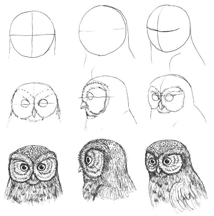 ![Как нарисовать сову]()