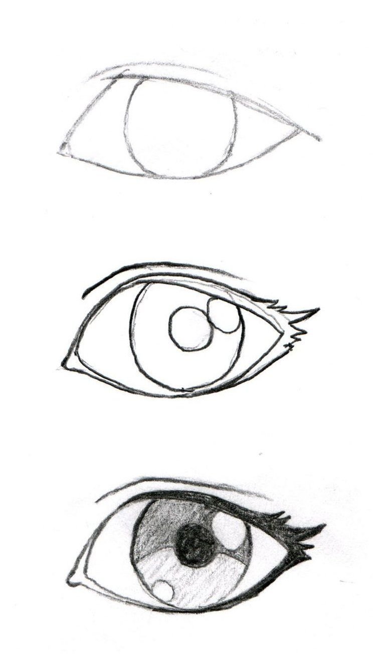 ![Пошаговое рисование глаз]()