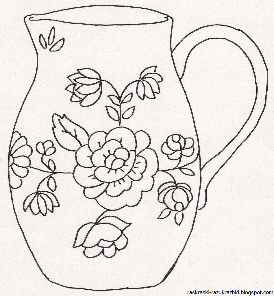 ![Раскраска посуда Гжель для детей посуда]()