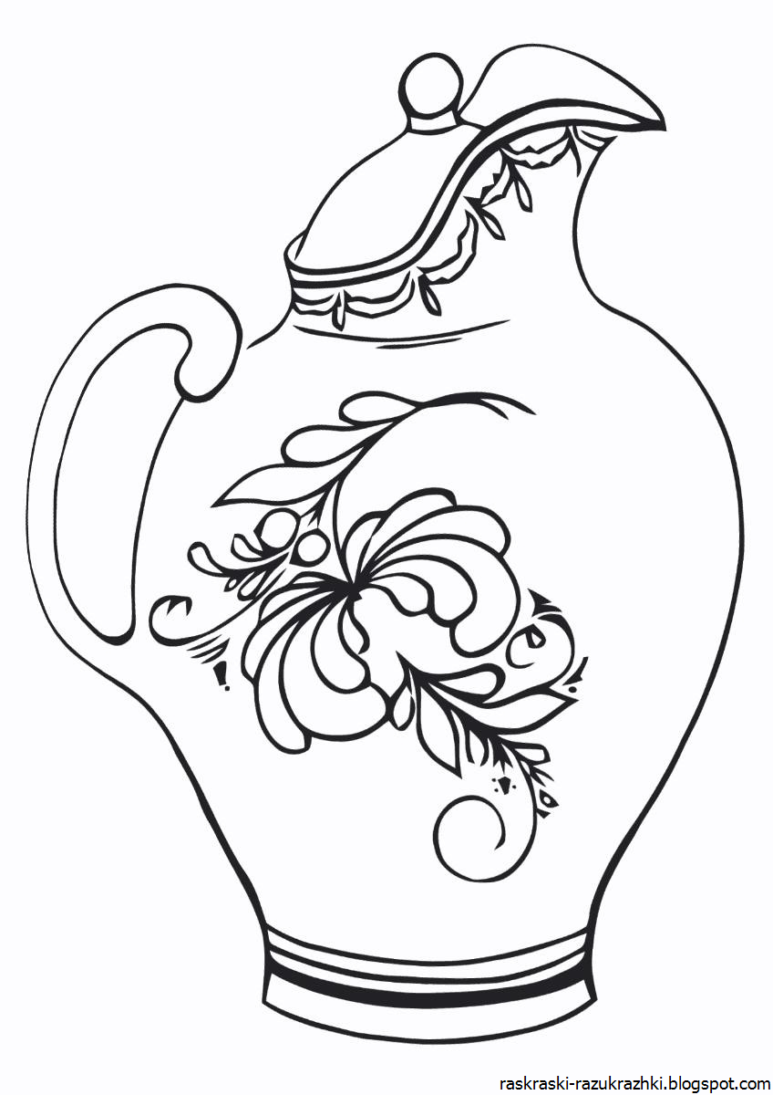 Раскраска посуда Гжель для детей посуда