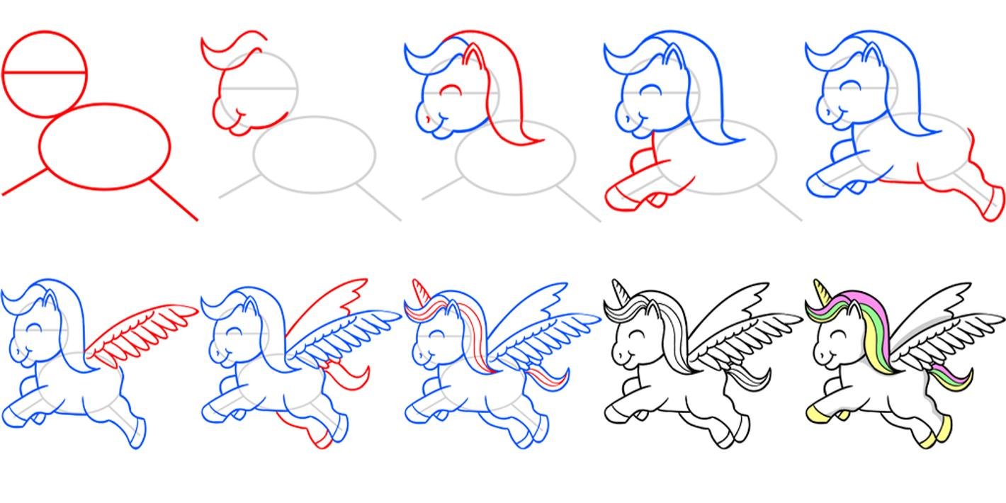 ![Как нарисовать единорога поэтапно]()