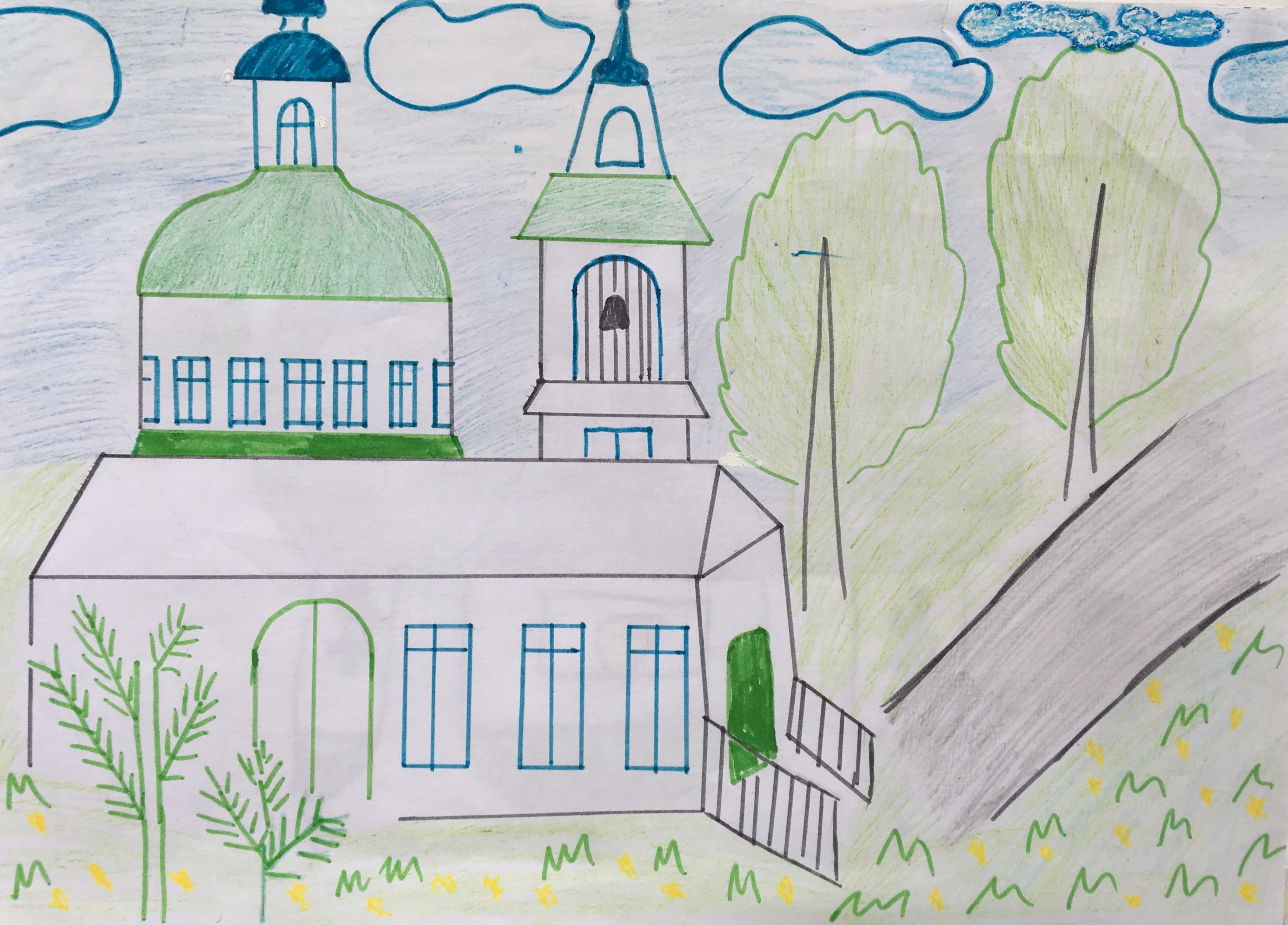 Рисунок дорога к храму карандашом