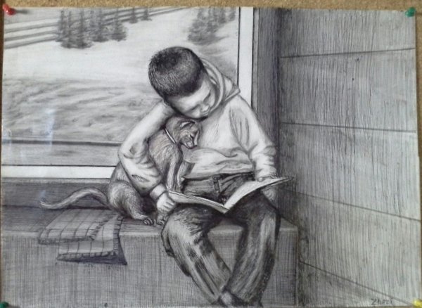 ![Рисунок мальчика карандашом]()