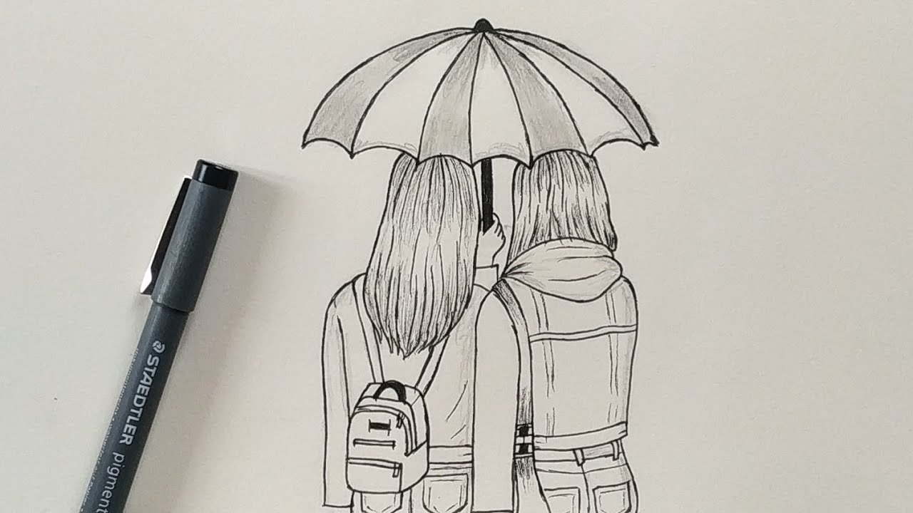 ![Подруги рисунок простым карандашом]()