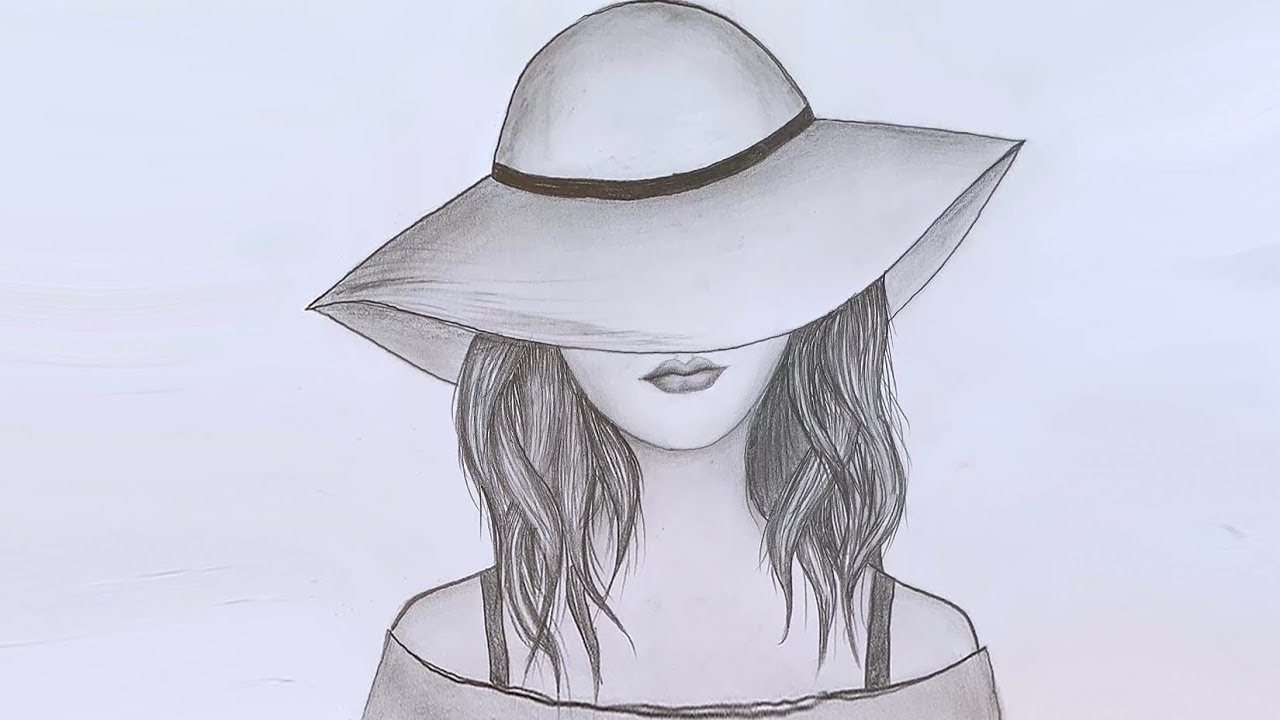 ![Девушка в шляпе карандашом]()