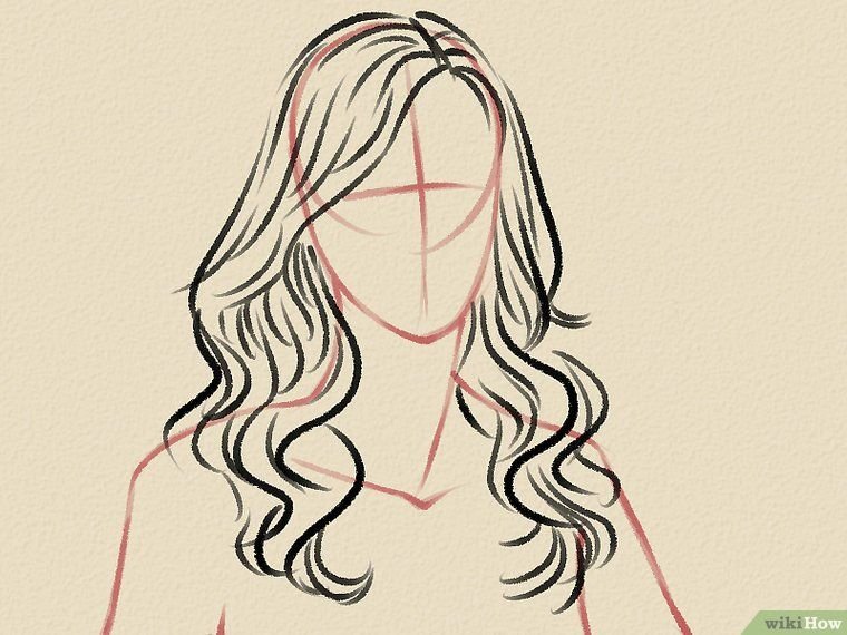 ![Длинные волнистые волосы карандашом]()