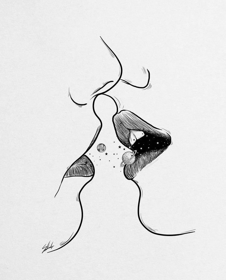 ![Поцелуй эскиз]()