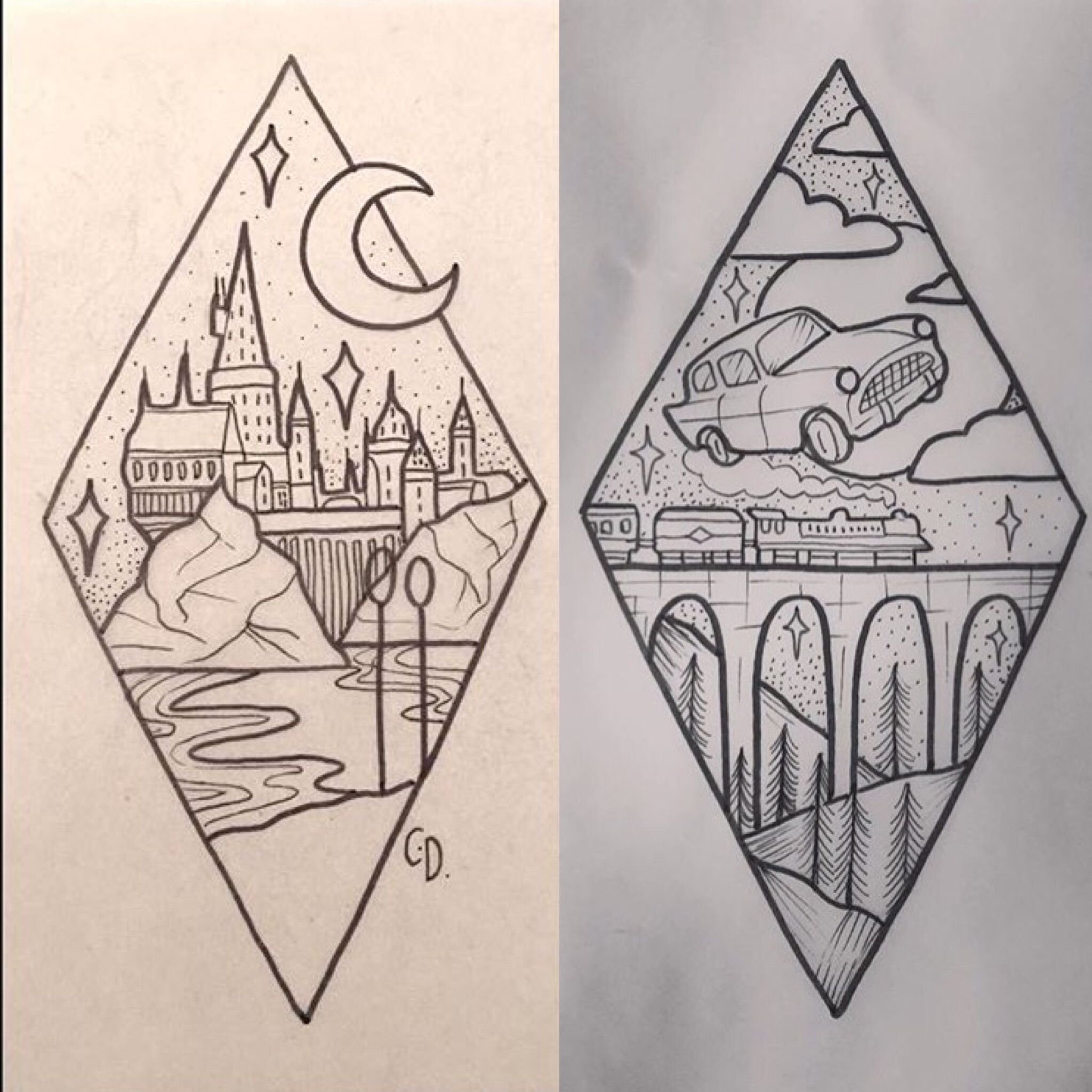 ![Рисунки в стиле Гарри Поттера легкие]()